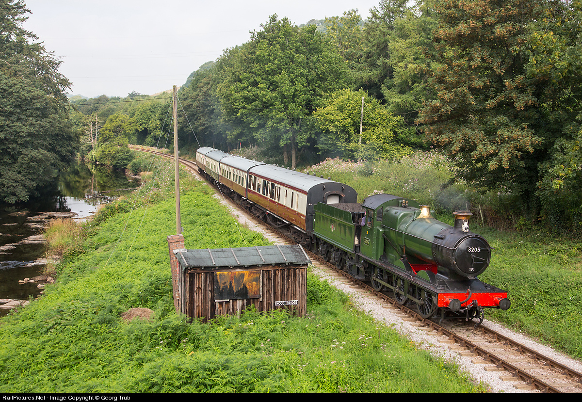 # 3205 is pulling the 10.45 train from Buckfastleigh to Totnes Littlehempston near Hood bridge.