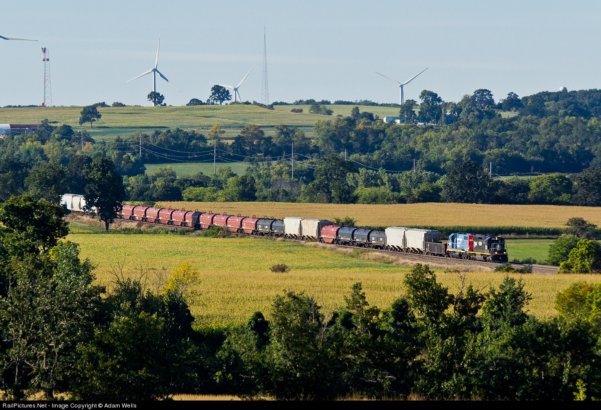 | With an emphasis on coil cars, the local Fond du Lac/Waukesha turn makes its way north down Byron Hill after interchanging with the WSOR in Ackerville. |