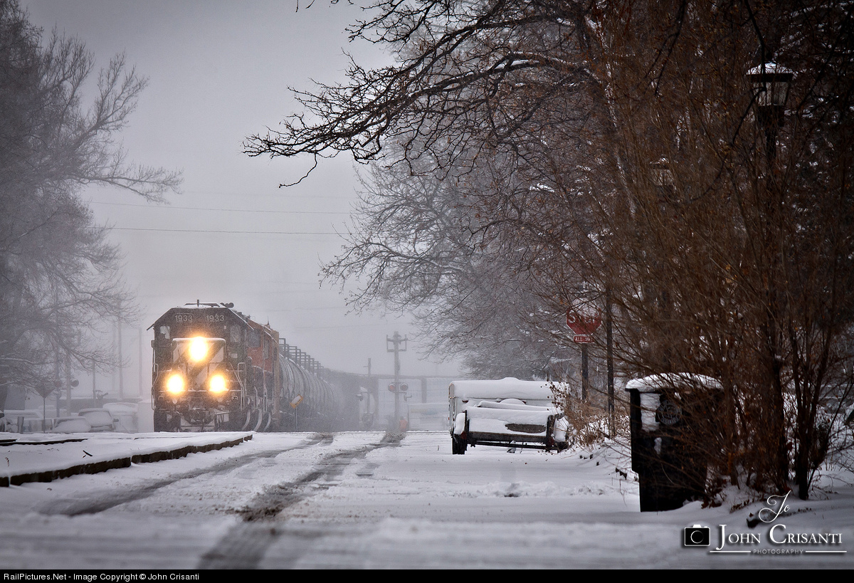 | The Buck Local slowly creeps up Atwood Street in Longmont, CO as snow continues to fall covering streets and neighborhoods in the area. After pulling passed the Short Transfer Switch, the Buck Local will then back into the East Yard, drop off their train and tie the power down and head home. |