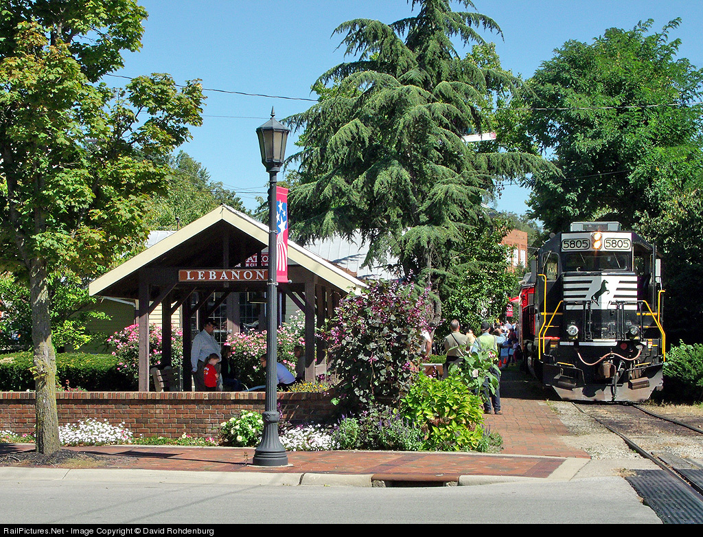 Class Act by a Class 1: It's not everyday that you will find Class 1 freight locomotives on a passenger train, much less on a tourist train! However, for the two weekend annual visit of Thomas the Tank Engine to the Lebanon, Mason & Monroe Railroad in Lebanon, Norfolk Southern generously provided the use of GP38-3 rebuild NS 5805 to provide the motive power for the trips, giving the LM&M's regular unit, GP7 55, a much needed break, and showing how much of a class act they really are. In this view, the crew chats on the platform at the Lebanon Depot while NS 5805 waits patiently as the passengers, including hundreds of happy children, board the train for a trip with Thomas the Tank Engine. Thomas is on the other end of the train, and will lead on the return trip. Special thanks to Norfolk Southern Corp. and the Lebanon, Mason & Monroe Railroad for making the dreams of so many children come true!