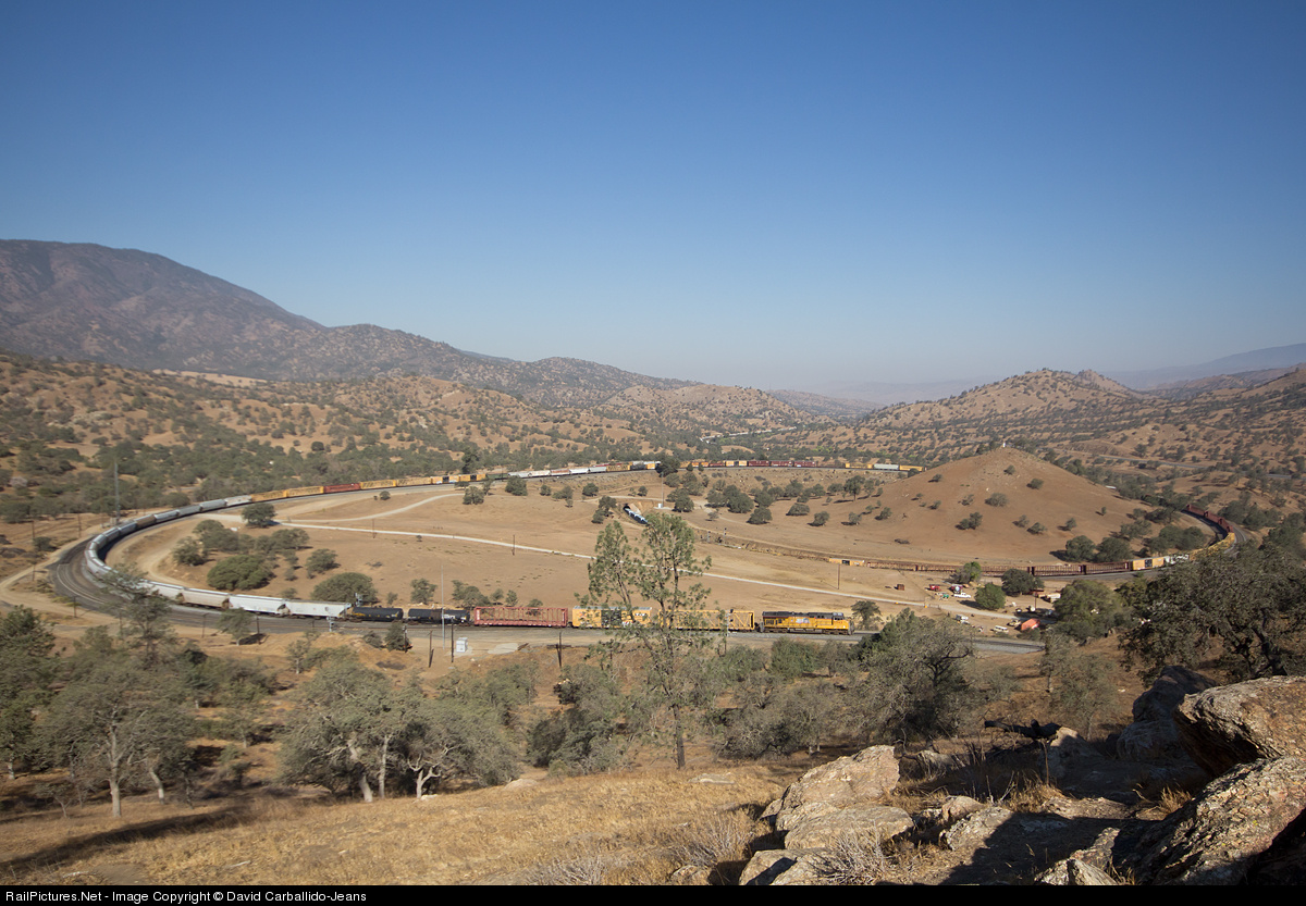 | The lone DPU helps control a West Colton, CA to Roseville, CA manifest to a stop at south Woodford as a result of a broken rail at Cliff; causing a major back up on the hill. |