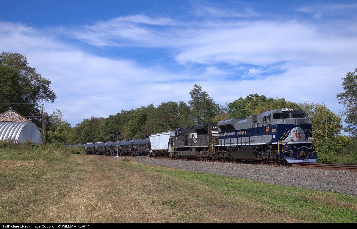 NS Heritage Wabash engine in the lead of a loaded oil train. |