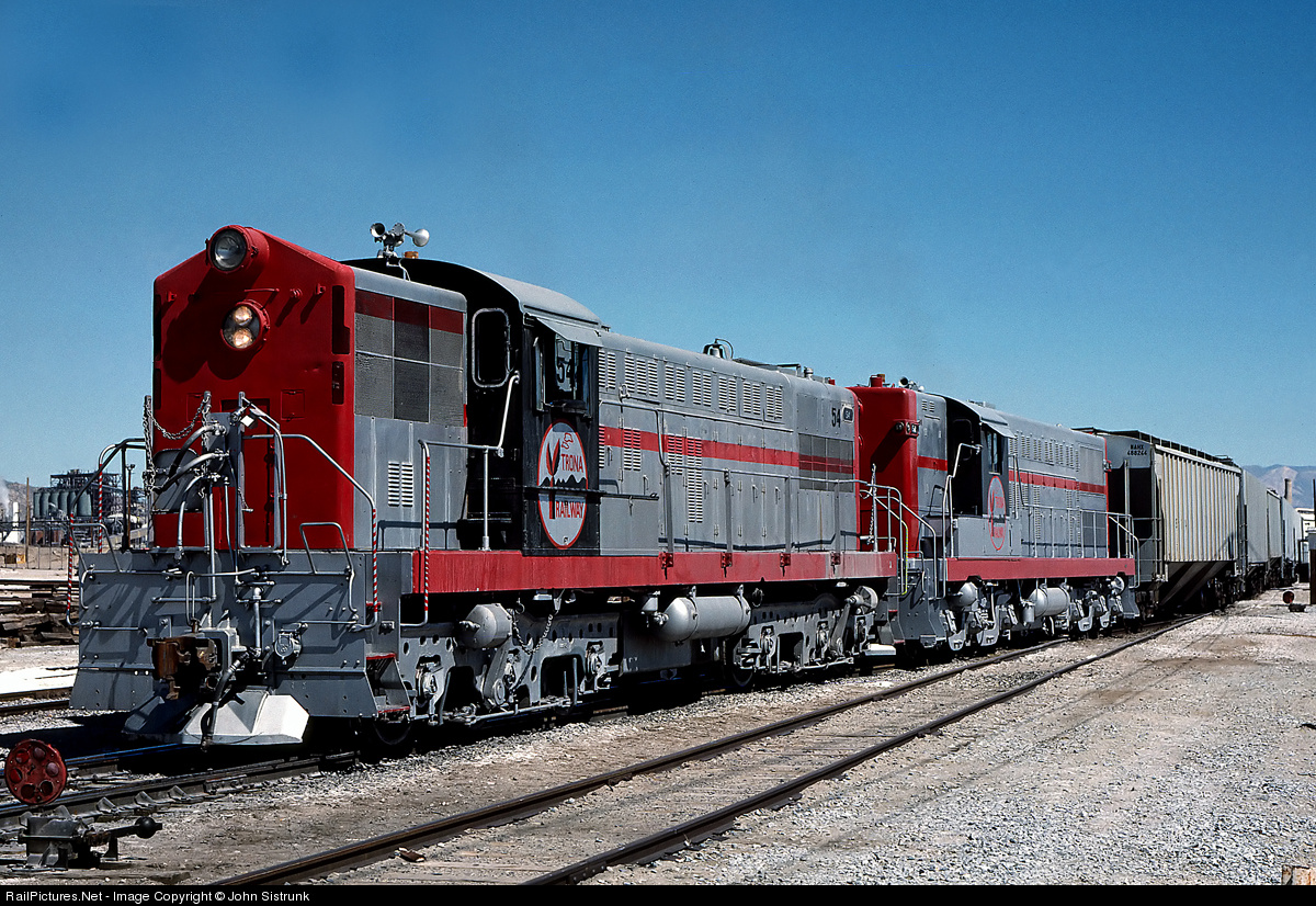 Trona Railroad Baldwin AS616s 54 & 52 switch the plant in Trona.