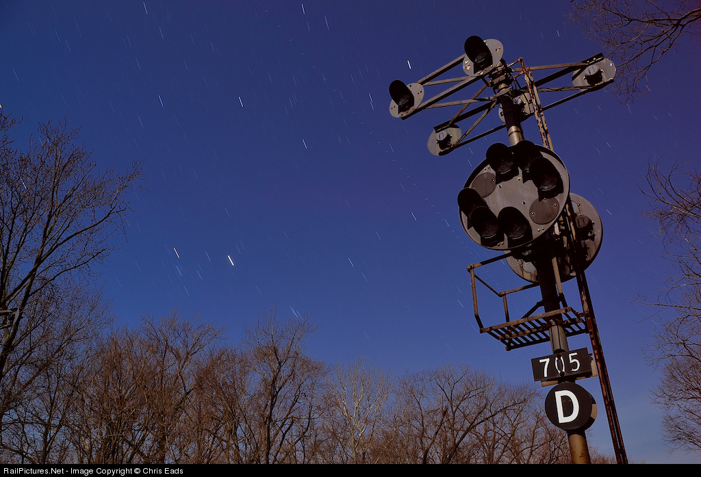 Lander, MD 2/25/2013 - It's 25 degrees under a full moon shortly before midnight, and the B&O CPLs at High Rock are not long for this world. With their replacements being assembled about a mile to the west, these signals would fall by the spring of 2013. They stood for decades as intermediate signals between the interlockings at East Brunswick and Point of Rocks on the CSX Metropolitan Subdivision. ISO 100, f/8, 274 seconds.