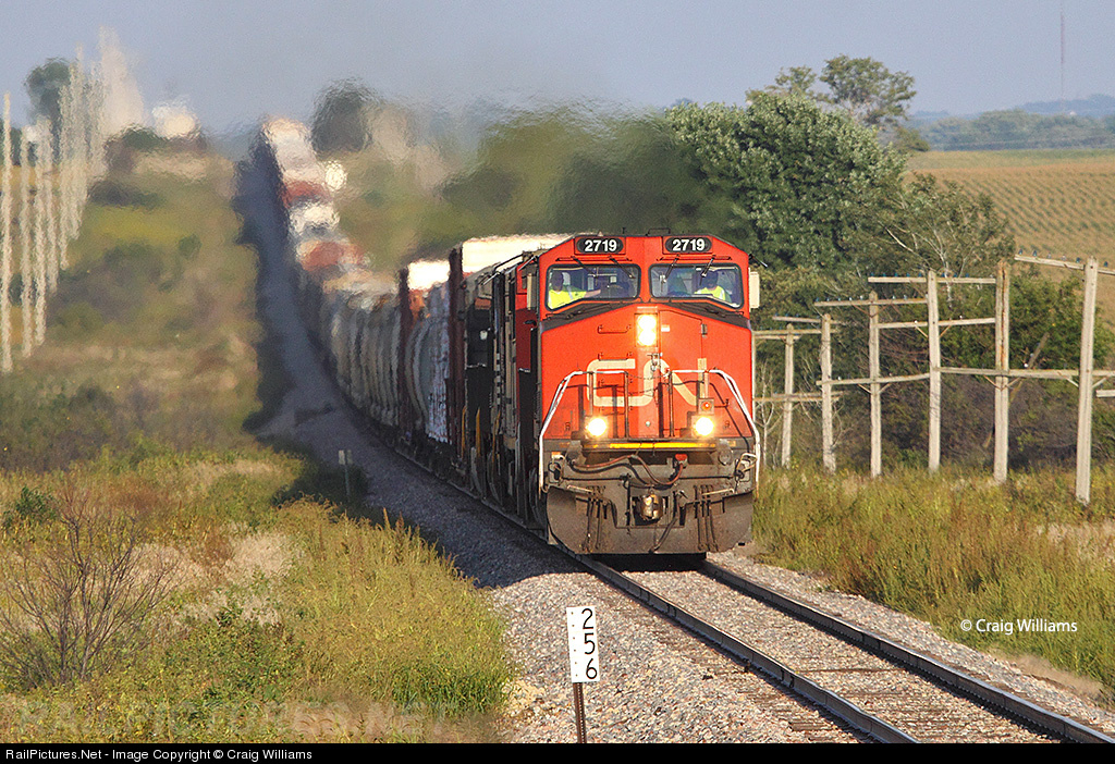 The daily Kirk Yard, IN, to Waterloo, IA, manifest train is westbound west of Independence. The train is about 19 miles from its destination at Waterloo Yard. The Dubuque Sub between Waterloo and Dubuque is a roller coaster, as seen here with the hogbacks between Raymond and Independence.