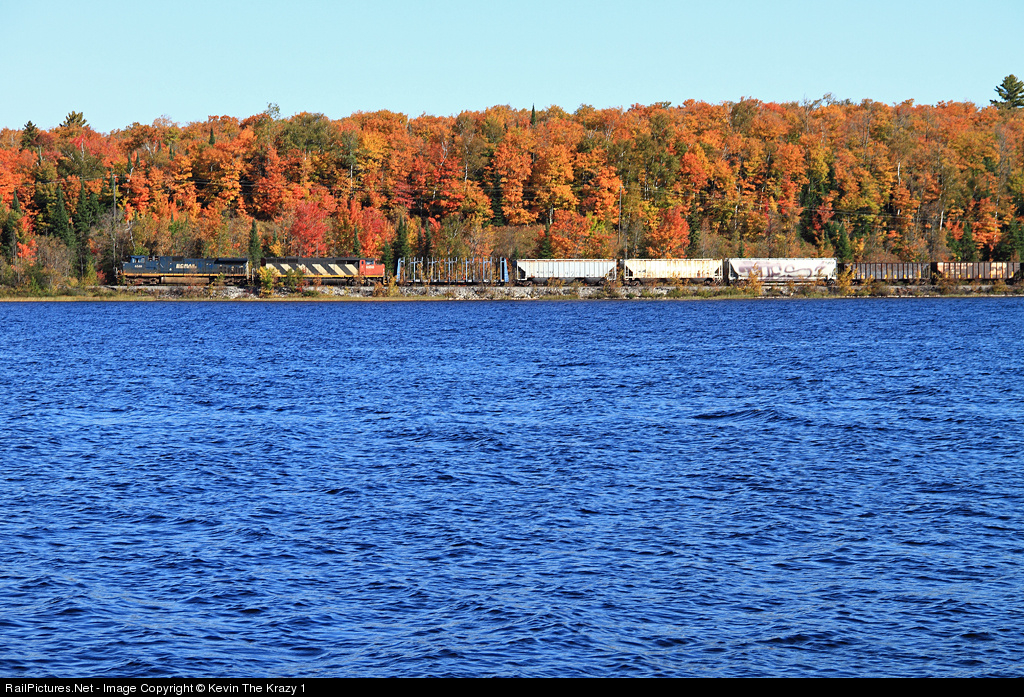 BCOL 4648 & CN 5500 head west along Lake Michigamme as the fall colors begin to peak in the Upper Peninsula.