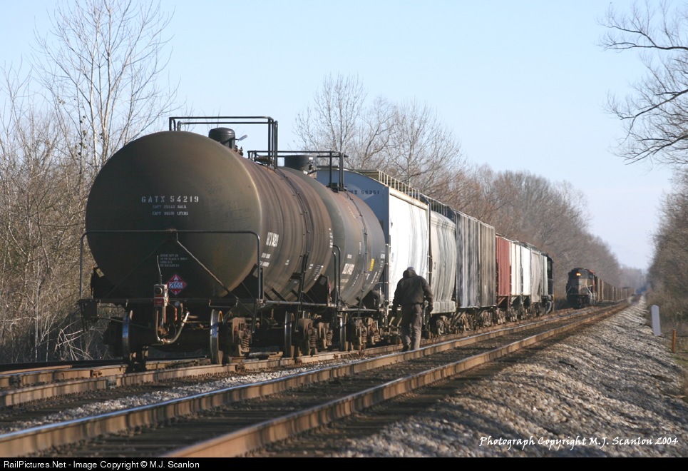 With the Q2J just ahead this short train has stopped in the siding and waits for the crewman to return from switching the track.