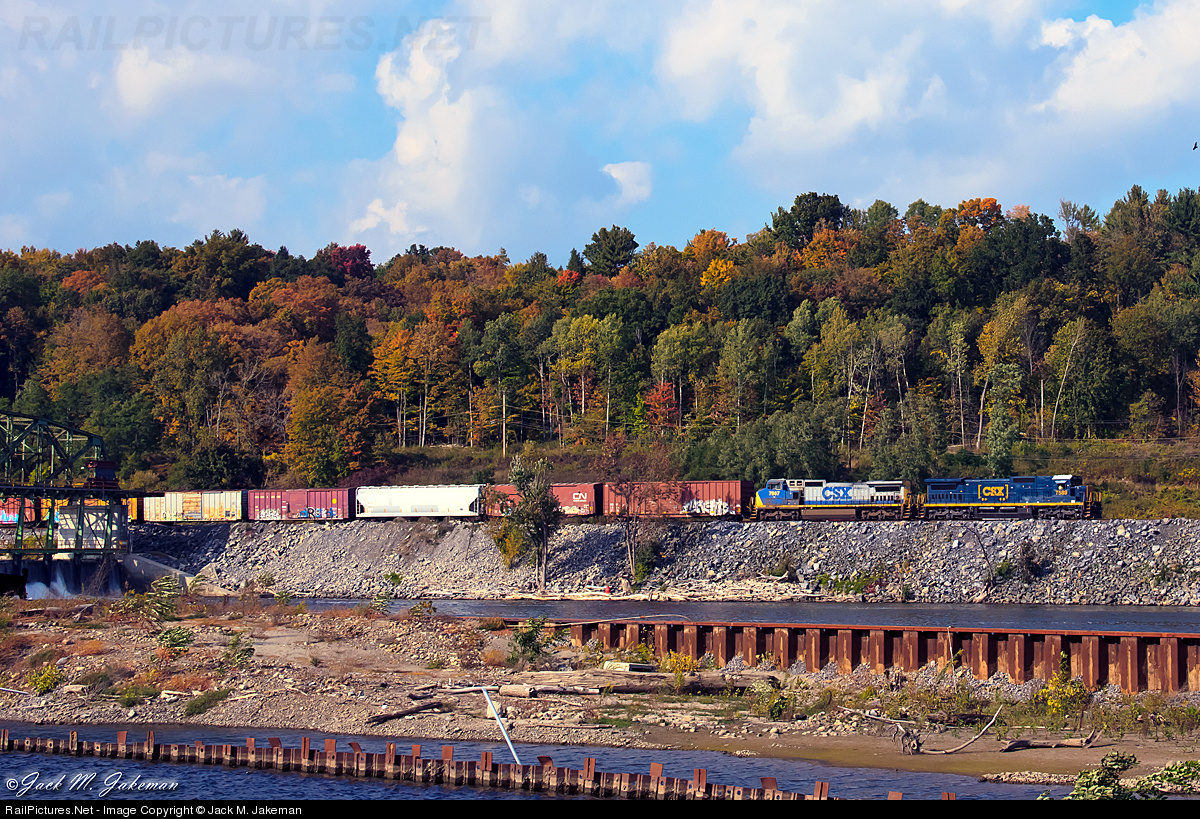 CSXT engine 7589 leads a mixed freight east along the Mohawk River. It appears that this engine was report to the new boxcar scheme within the last few months.