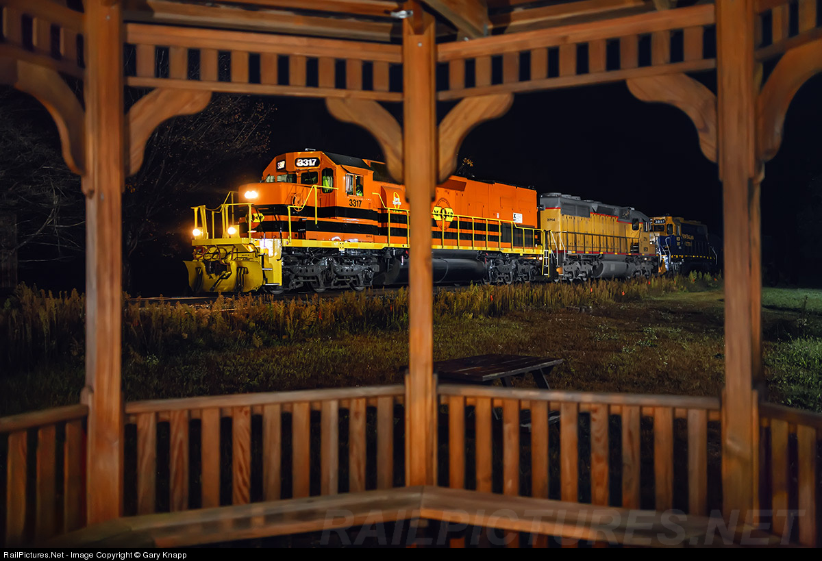 Tunnel Motor 3317 of Rio Grande heritage wears the G&W colors well in it's extended career working in Vermont. On this night the only diesel of its kind in New England led 323 into Waterbury, passing the very conveniently positioned gazebo at 04:56. Thanks to Green Mountain Coffee Roasters for the gazebo!
