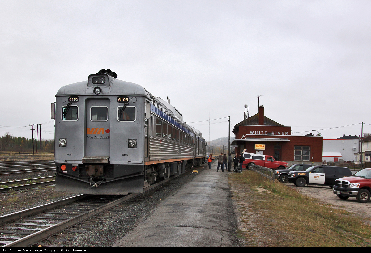 RailPictures.Net Photo: VIA 6105 VIA Rail Budd RDC-1 at White River, Ontario, Canada by Dan Tweedle