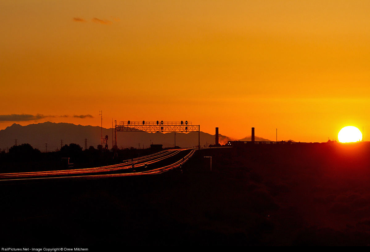 As the sun rises, a UP manifest is about to enter the BNSF Needles Sub for its trackage rights journey west towards West Colton, CA on 3/7/13. 2 UP SD60M's would be the rear end helpers on this train for the climb towards Cajon Summit.