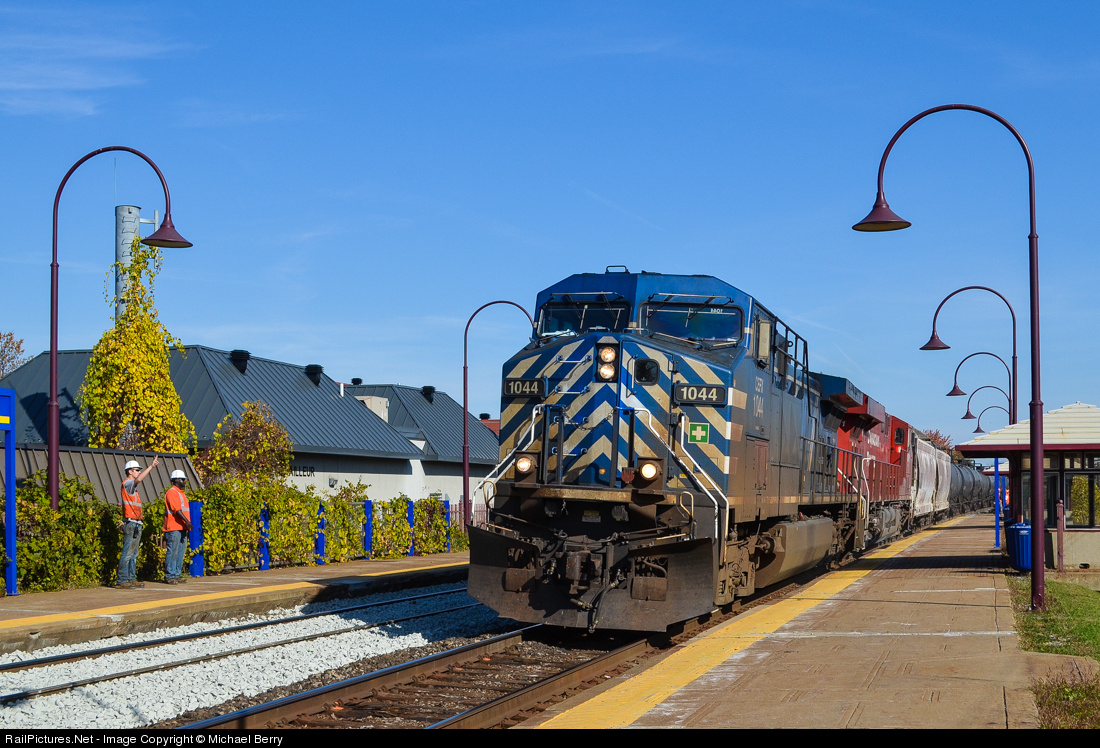 | CEFX 1044 & CP 8911 head west through Valois Station with an empty unit train. To the left trackwork is ongoing and an MoW worker waves at the passing train. For more train photos, check out http://www.railpictures.net/photos/mtlwestrailfan/ |