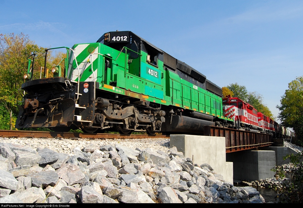 Over the summer, the WSOR bridge over the Fox River in Waukesha underwent some renovations, and here, we see ex-Colorado and Southern SD40-2 #4012 lead a late running Horicon-Janesville freight across it! For a view of the old bridge, with another "Green Weenie" on point, see image: 423590