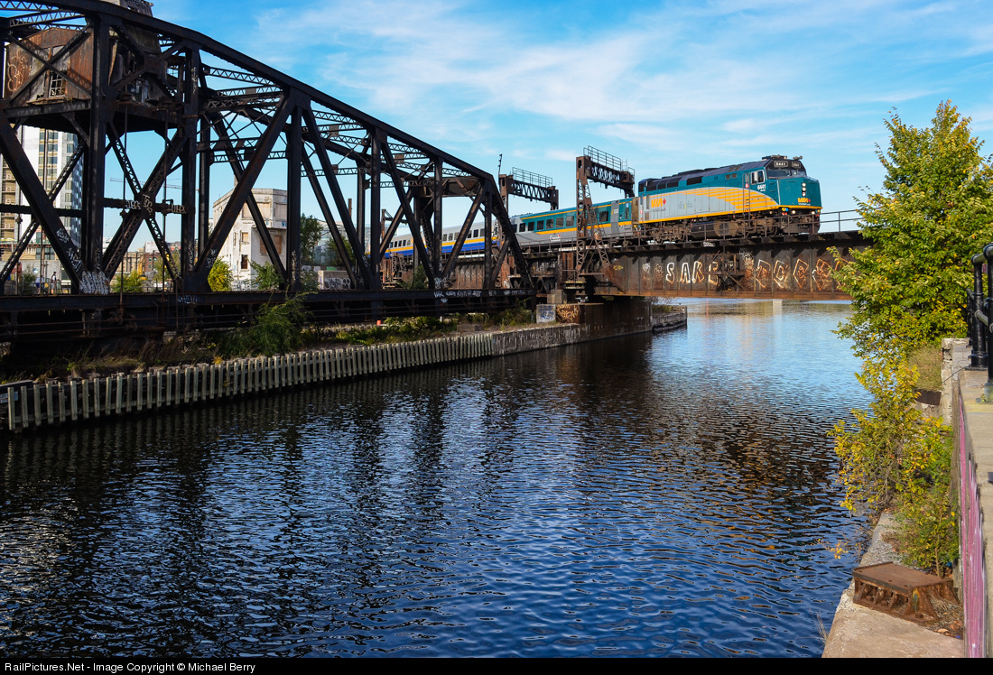 | VIA 54 is about 20 minutes late as VIA 6452 pushes it over the Lachine Canal towards Central Station. The bridge to the left used to be CN's entry point to the Port of Montreal. It has been out of use about 20 years and is locked in place. CN accesses the Port of Montreal through a newer bridge a bit to the east. For more train photos, check out http://www.railpictures.net/photos/mtlwestrailfan/ |
