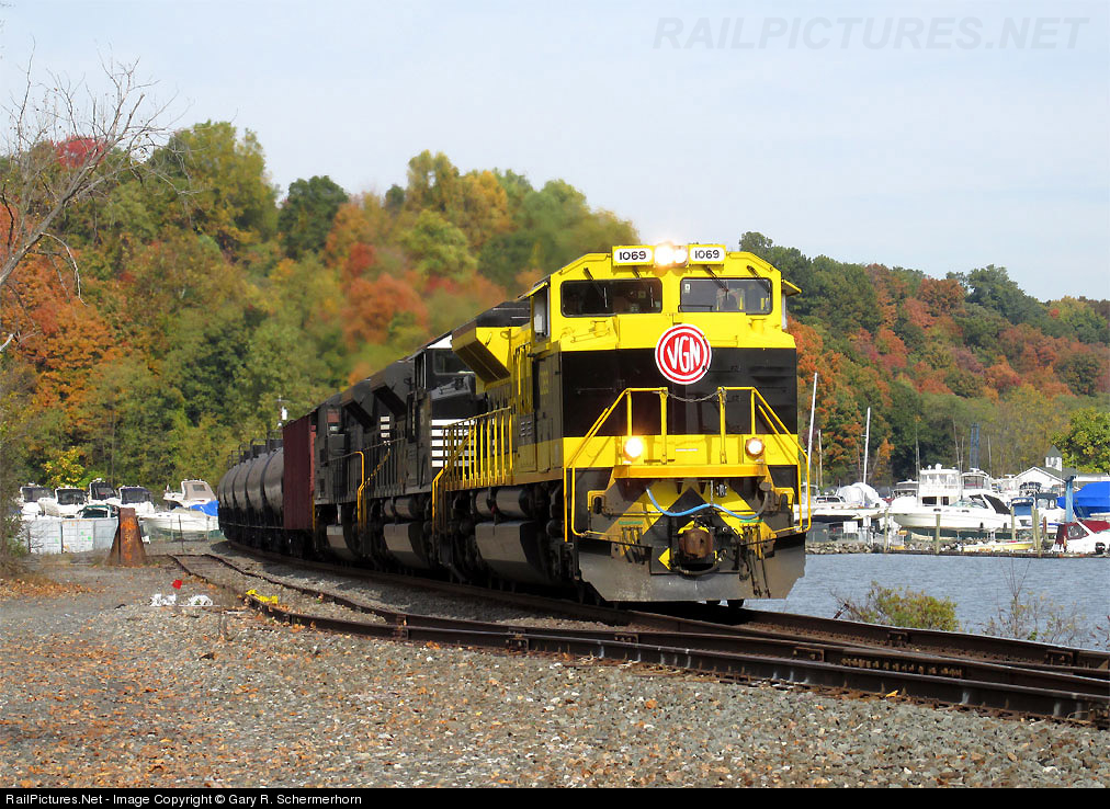 NS 1069 "Virginian" makes a striking sight on the old former NYC River Line as it snakes past the old marina at Marlboro with a southbound Philly oil after meeting a northbound K637 at Milton.