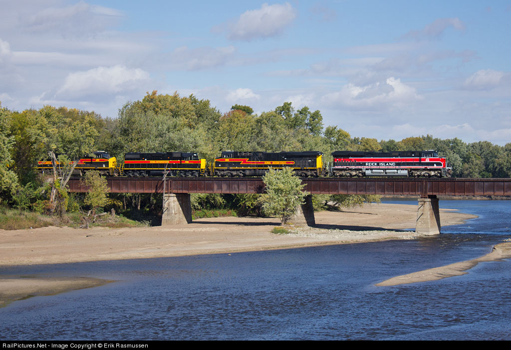 The Rock Island heritage unit starts over the Cedar River with 4 other IAIS engines on the East Train.