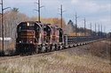 It was the end of a legendary railroad on this July 31, 1984, when Conrail was lifting the 26-mile Lackawanna Cut-off across the western third of Northern New Jersey. To keep the line out of the hands of competing railroads, Conrail rushed a sale of the property to a developer while it sent the rail to its Lucknow plant near Harrisburg to be welded into quarter-mile lengths for elsewhere in its improving system. As a young railfan photographer and new Tri-State Chapter NRHS member, I followed the railtrains, while the train crews were themselves taking pictures, parking the engines each night next to a landmark on the line. A small party went out with small strobes to document passing history after the sun set. Here, we see the second of the three rail trains parked in front of the tower at Greendell. The last previous train through here was an Amtrak special in 1979 to evaluate service on the route, so the sumac and other vegetation were crowding the train crews. Long-time Tri-Staters Bob Bahrs, Bob Rose, the late Mike Miterko and I were all throwing flashes into the rural blackness. Nearly 30 years later, NJTransit has begun to lay the first seven miles of track over this route for commuter service, but that first segement won't get this far.
