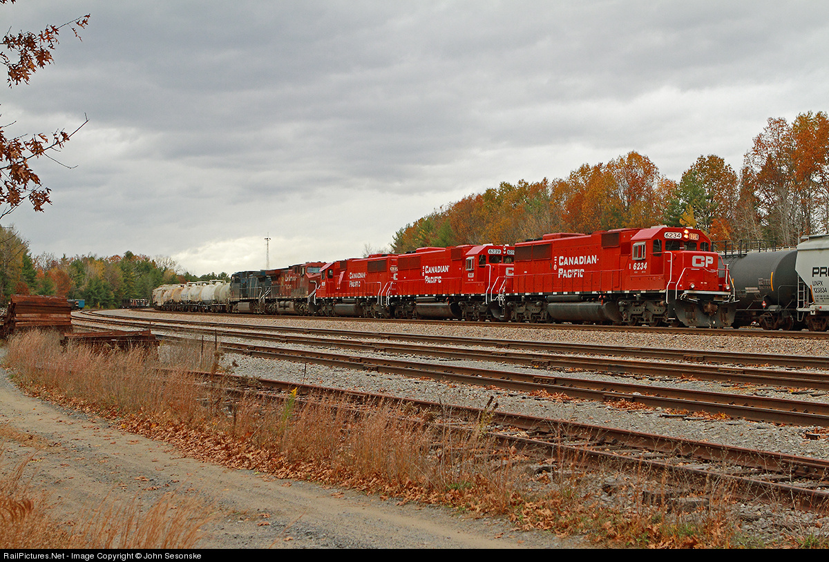With their storage and being advertised for sale or lease, finding CP SD60's on the road has been more difficult. But on 10-24 CP sent a trio of them into the US on the Montreal to Binghamton train 252. Train is seen coming thru the yard at Saratoga just prior to working the yard. Trailing units are CP 6239 and CP 6225. There was also CP 9606 and CEFX 1047 picked up on the trip south.