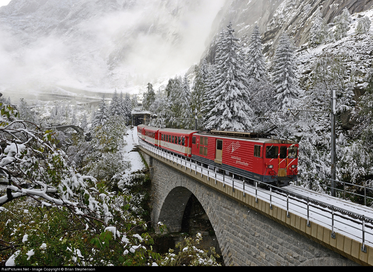 RailPictures.Net Photo: 95 Matterhorn-Gotthard Bahn (MGB) Deh 4/4 at Goschenen, Switzerland by Brian Stephenson