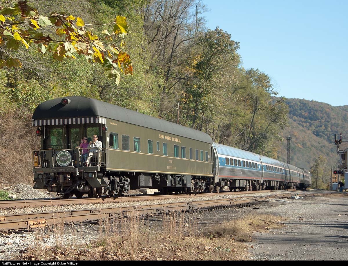 Running over five hours late Amtraks eastbound Cardinal passes through historic Thurmond with the New York Centrals Portland on the back end.