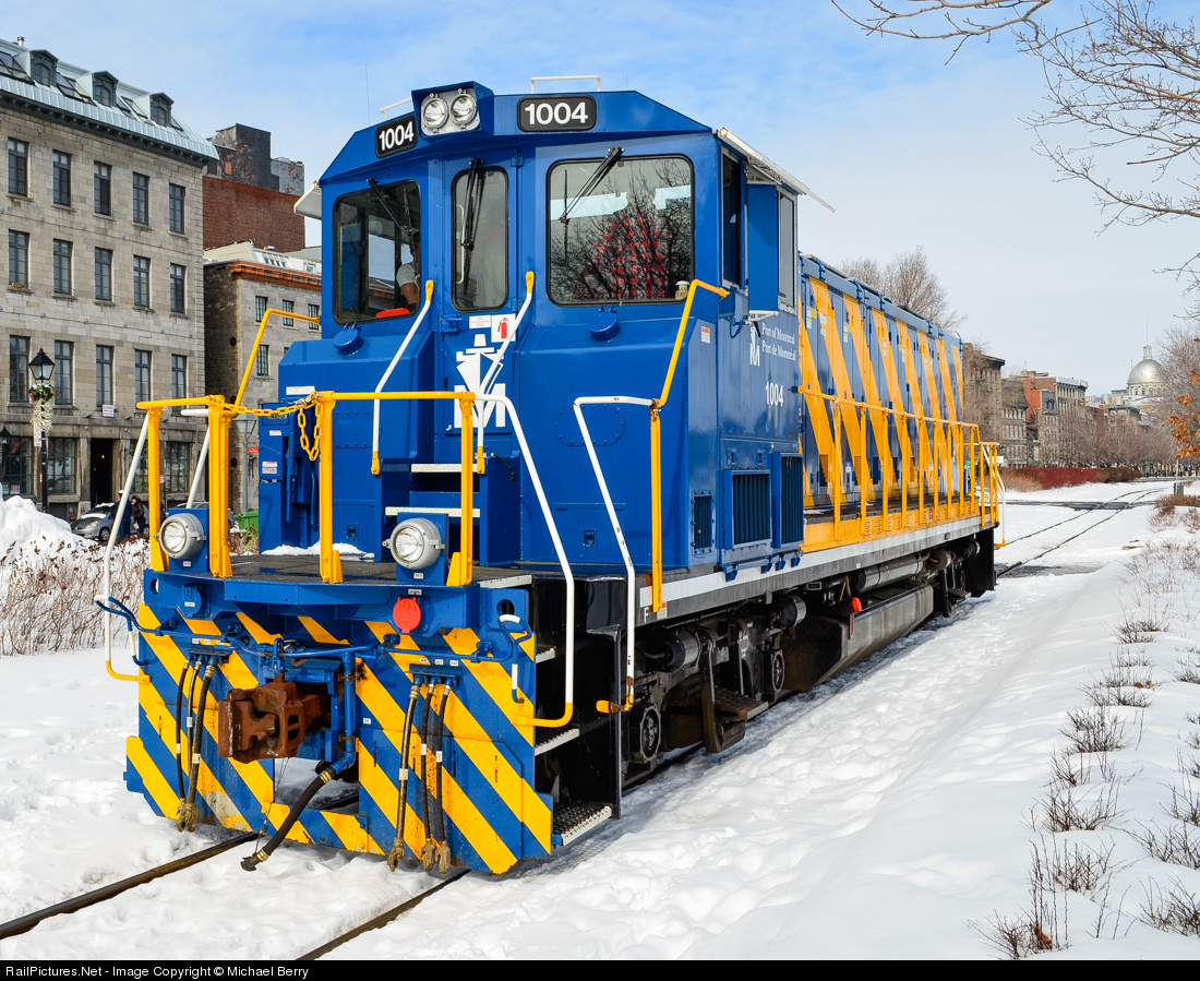 A face only a mother could love. You've heard of chop nosed locomotives.... Well say hello to a no nose locomotive! On their second order of RP20BD's, the Port of Montreal specified this nose design, which differs from their first order which had a more conventional nose. Here POM 1004 is stopped to participate in the Old Port Symphony, which involves boats, trains and church bells making a lot of noise, an annual event. For more train photos, check out http://www.railpictures.net/photos/mtlwestrailfan/