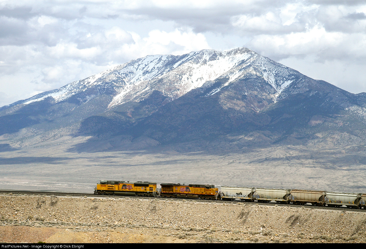 Arnold’s Loop in eastern Nevada is one of my all time favorite places to railfan. I keep going back over and over trying to find new photo angles. I am especially fond of shots that include Pilot Peak across the Pilot Valley east of the loop. There is a wonderful sense of isolation out here and it is rare indeed to encounter another railfan, or anyone else for that matter. This image shows the Union Pacific’s daily Roper Yard, Salt Lake City, to Roseville, California, manifest train rounding the loop westbound. Pilot Peak is crowned with snow in this late April shot.