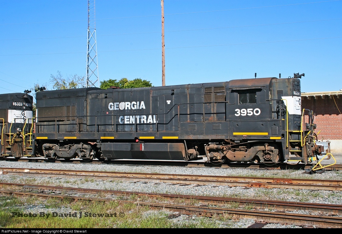 | Former Southern Railway/Norfolk Southern U23Bs still earn their keep on G&W's Georgia Central although they're showing their age. GC 3950 stands for a portrait in Macon, Georgia while awaiting its next call to duty. |