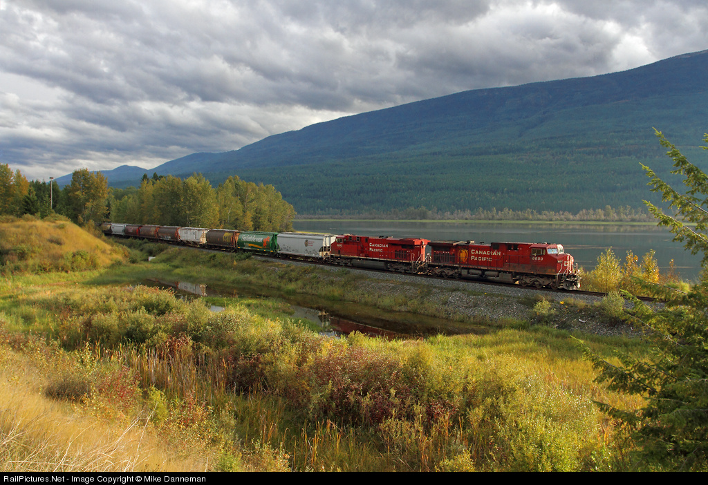 Grain along the Columbia A Canadian Pacific unit grain train rumbles northward at McMurdo, British Columbia, on the afternoon of September 21, 2013. This is on CP’s scenic Windermere Subdivision between Cranbrook (Fort Steele) and Golden along the Columbia River.