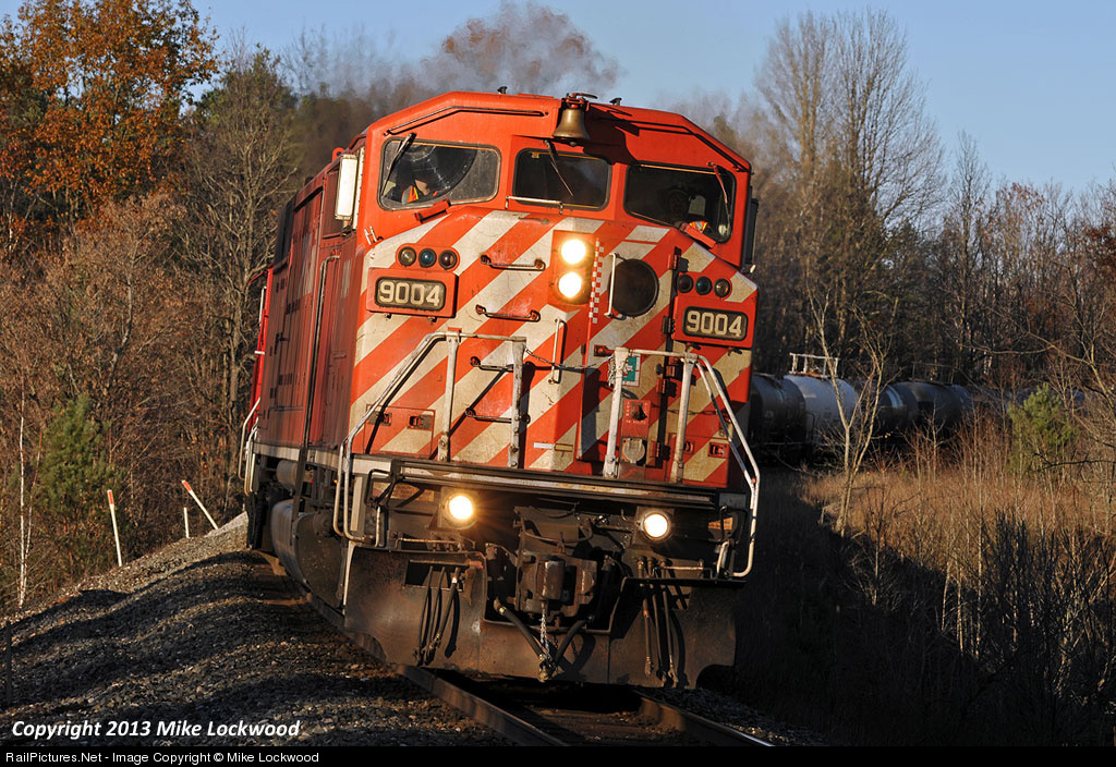 | CP 9004 leads 2nd 420's train southbound at Carley towards a meet with 113 at Craighurst. Gotta love the brass bells on these units... Golden Corral anyone? Thank-you for the tip, Delic. 1536ahrs. |
