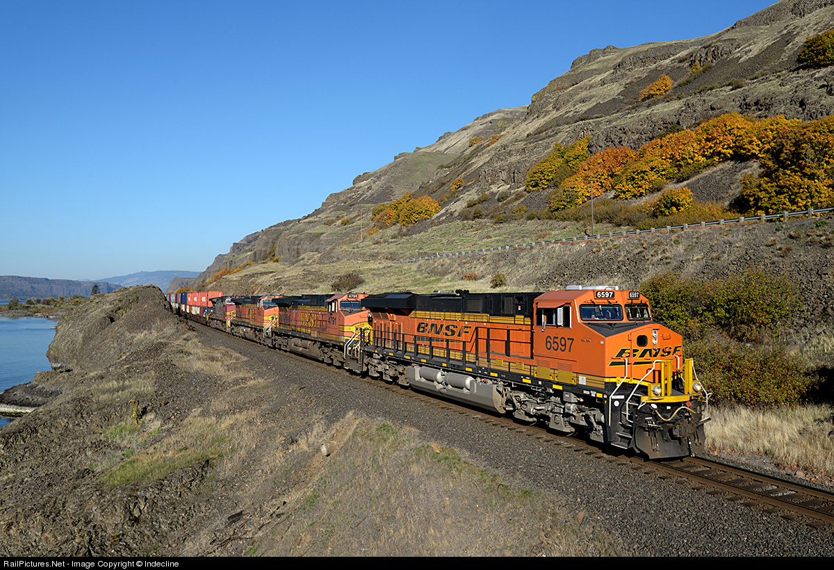 RailPictures.Net Photo: BNSF 6597 BNSF Railway GE ES44C4 at Lyle, Washington by Indecline