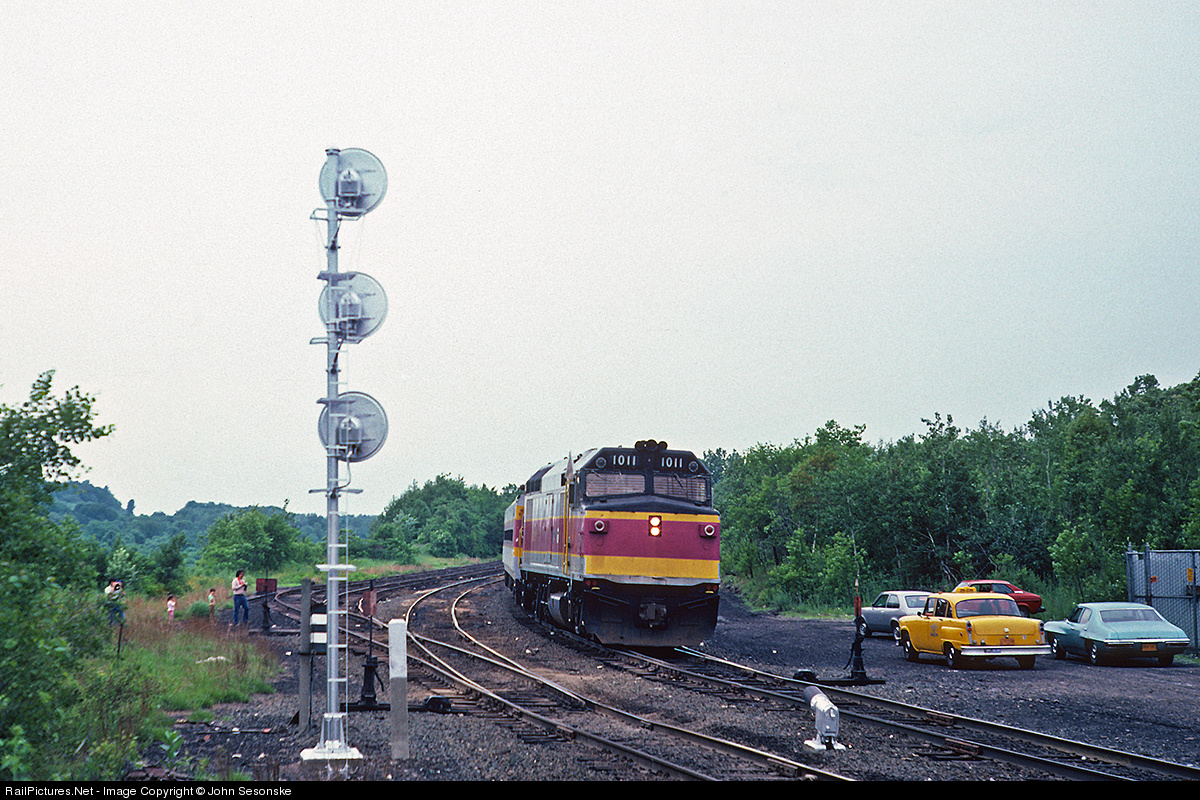 | On June 12, 1982 either the MVRHS or the MBRRE operated an excursion over the Boston & Maine from Boston to the extreme west end at MP B210 in Rotterdam Jct. This was one of the few, if not the only, passenger train to operate into Rotterdam Jct in the modern area. The EB return trip is seen coming out of the small interchange yard. At this time the yard was much larger then today and the B&M had CTC all the way to this point at MP B208.8 |