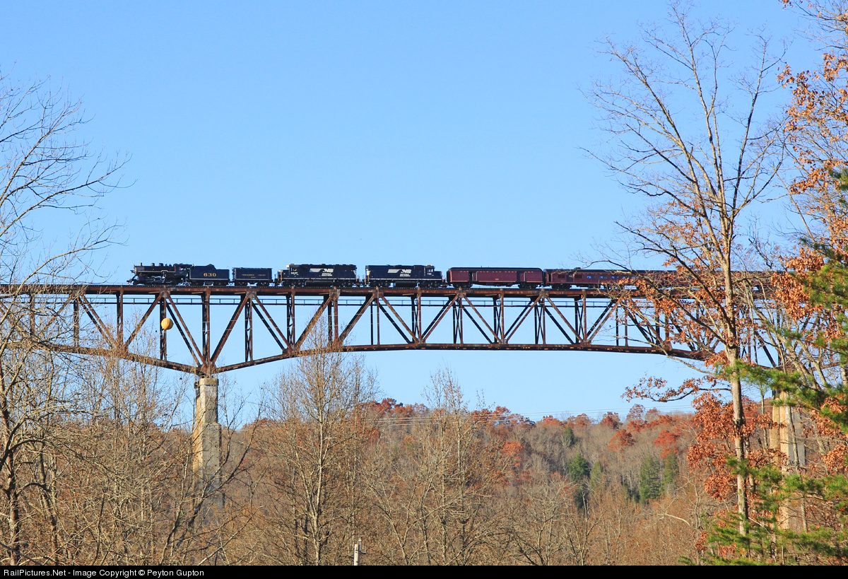 | Southern #630 flies high above New River Valley with the southbound return trip to Chattanooga from Oneida.