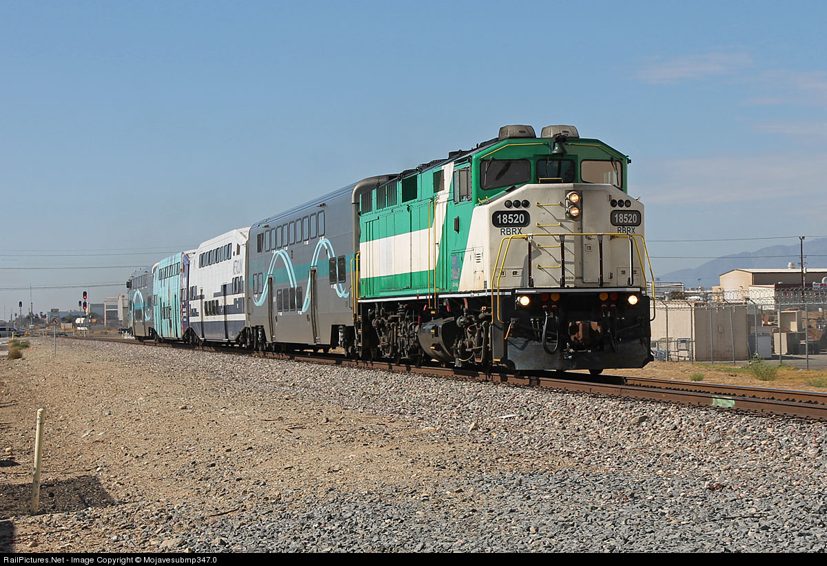 RBRX 18520 leads train 356 towards it's Rialto station shop as it heads east towards its finally destination of San Bernardino.