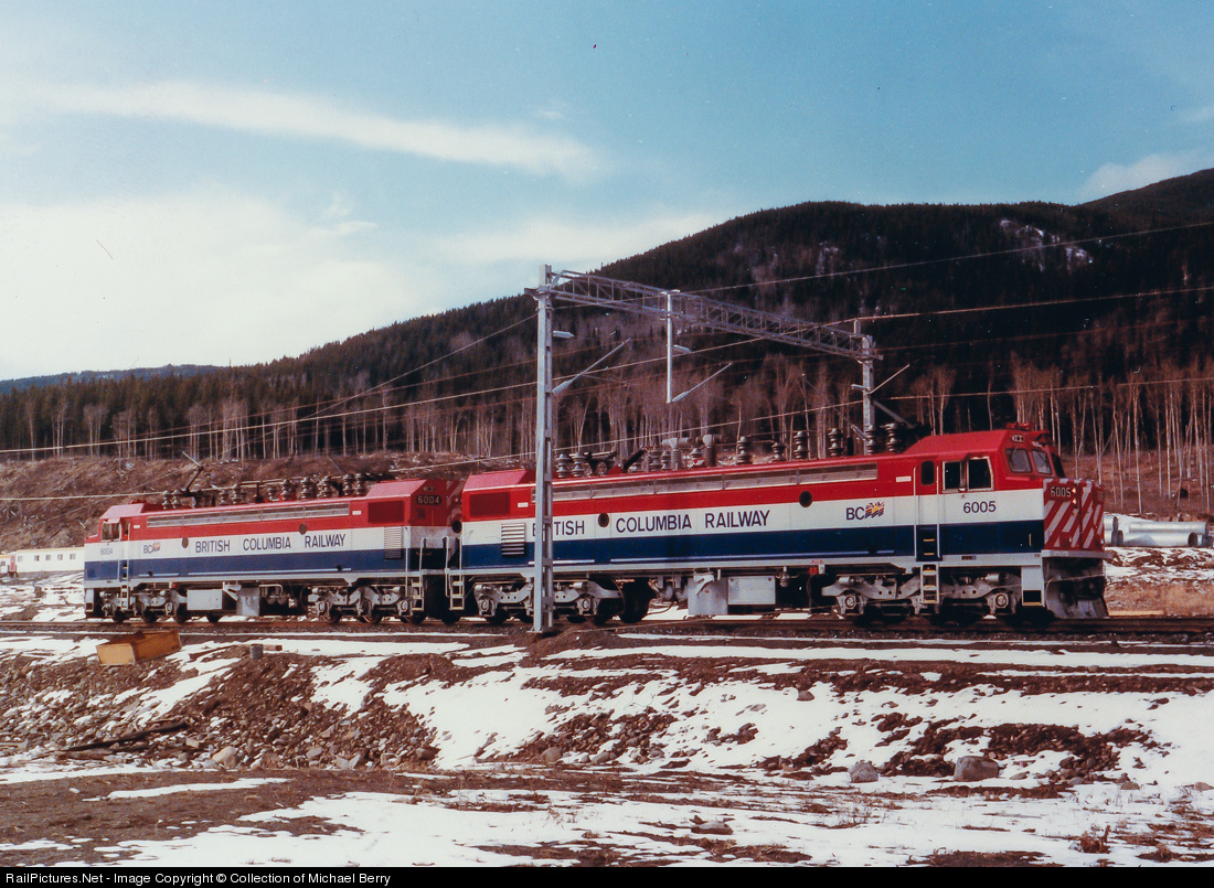 Photo taken by Glen Fisher, my father-in-law. He is is a railway consultant and was involved in the BC Rail Tumbler Ridge electrification during the early 1980s. Here we see a pair of BC Rail GF6C electric locomotives (BCOL 6005 & BCOL 6004), probably near the mine loading site at Teck.