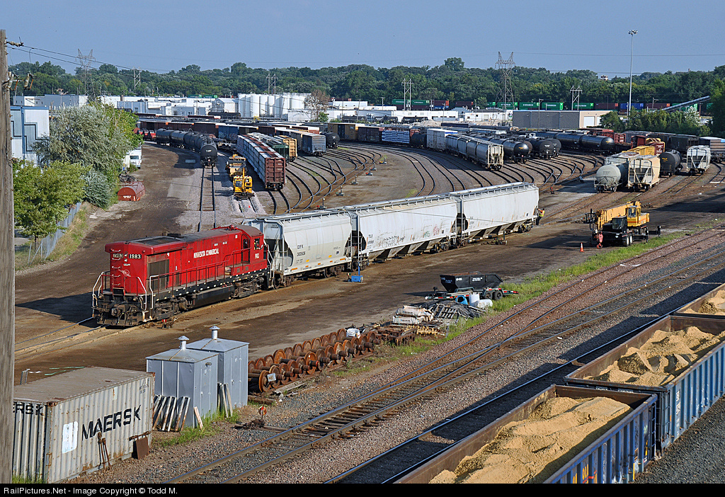 A hot and humid Sunday morning finds a two man crew hard at work at the Minnesota Commercial yard in St. Paul, MN switching cars and making trains.
