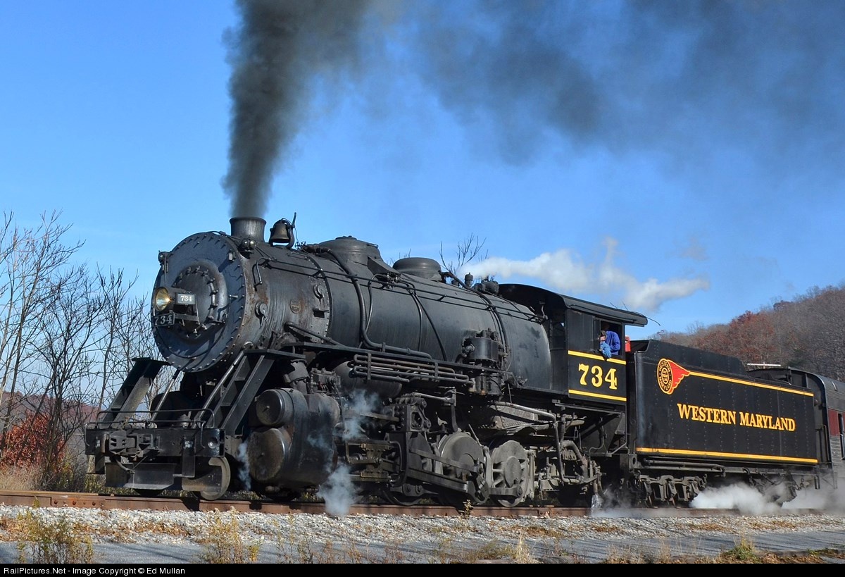 RailPictures.Net Photo: WMSR 734 Western Maryland Scenic Railroad Steam 2-8-0 at Cumberland, Maryland by Ed Mullan