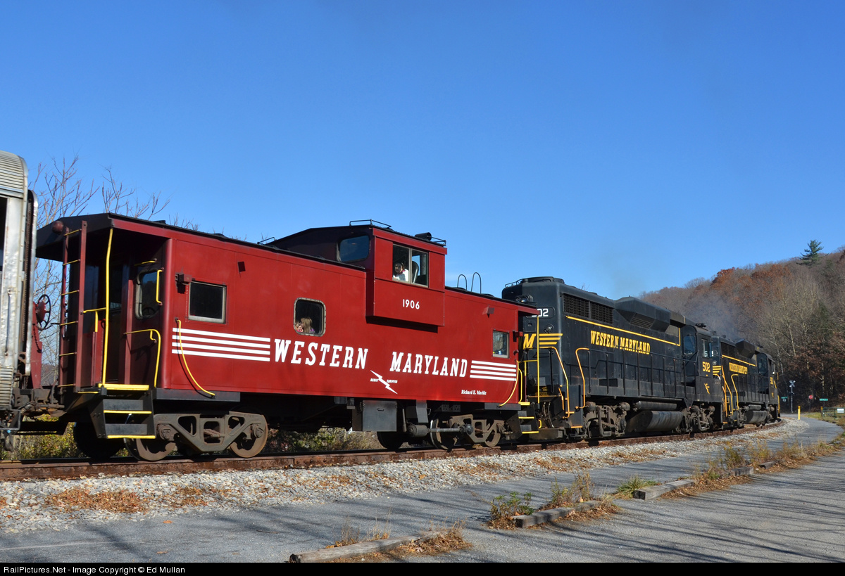 WMSR's caboose, the "Richard E Markle", named for the railroad's popular former conductor. follows 734, 12 passenger cars around the famous curve, with the road's
