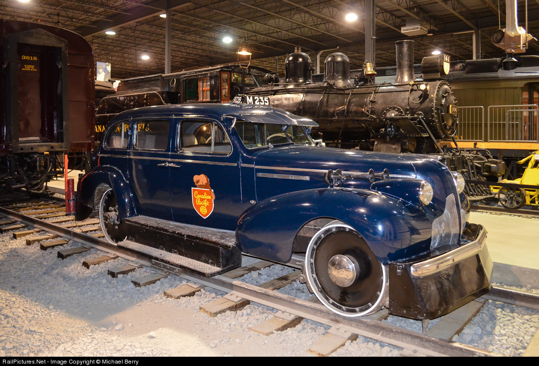 This track inspection car was originally built for Dr. H.A. Beatty (brother of CP president Sir Edward Wentworth Beatty) as a regular 1939 Buick Century. In 1947 he donated it to CP, which converted it to the vehicle seen here. According to the information on the placard at Exporail "the original chassis was replaced by a customized frame that includes an autonomous turntable, two railway axles, and flanged wheels.....The original spring suspension was replaced by an elliptic spring system, and an air brake system and a compressor were added to the vehicle." Behind is CP 144, a 4-4-0. For more train photos, check out http://www.railpictures.net/photos/mtlwestrailfan/