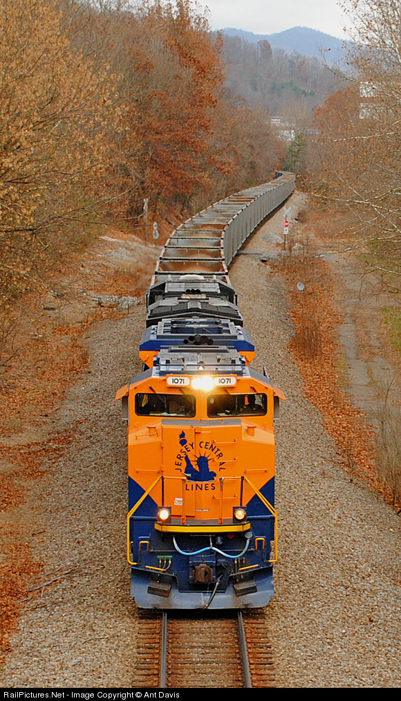 While 630 was laying over in Asheville for 3 hours, we managed to catch NS 1071, the CNJ Heritage unit, east of Asheville leading an empty limestone train.