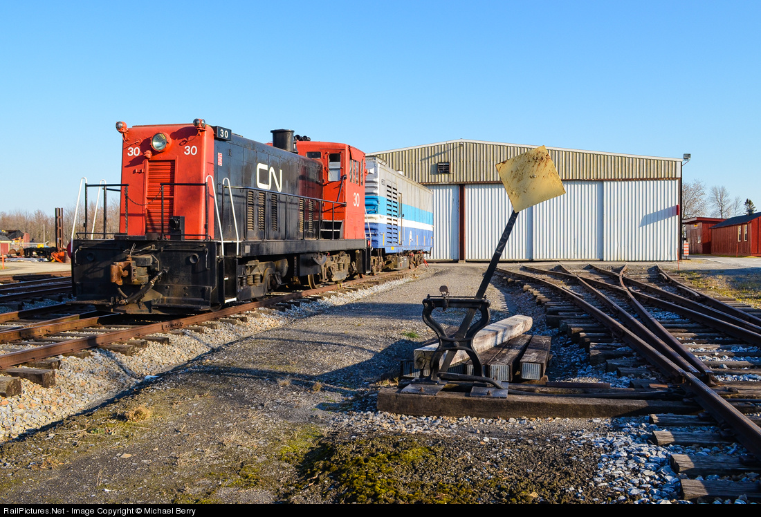 | A three-way stub switch. To the right of CN 30 and AMT 603 (generator car) at Exporail we see a three-way stub switch, not a very common sight. For more train photos, check out http://www.railpictures.net/photos/mtlwestrailfan/ |