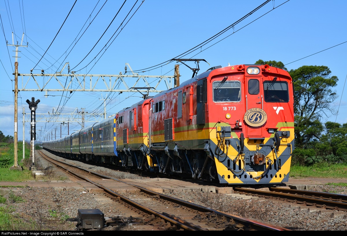 Brand new to the Transnet Freight Rail fleet, 18-773 & 18-772 passing through Umlaas Road, as they leave KwaZulu Natal with one of the beautiful and prestigious Blue Train sets, bound for Johannesburg. The real time route camera can be seen mounted to the left of the Blue Train headboard, which provides passengers on board with video footage of the road ahead of the train. Section Manager / Senior Driver, from the Umbilo Electric Locomotive Depot, Mr. Chris Schutte, was at the controls.