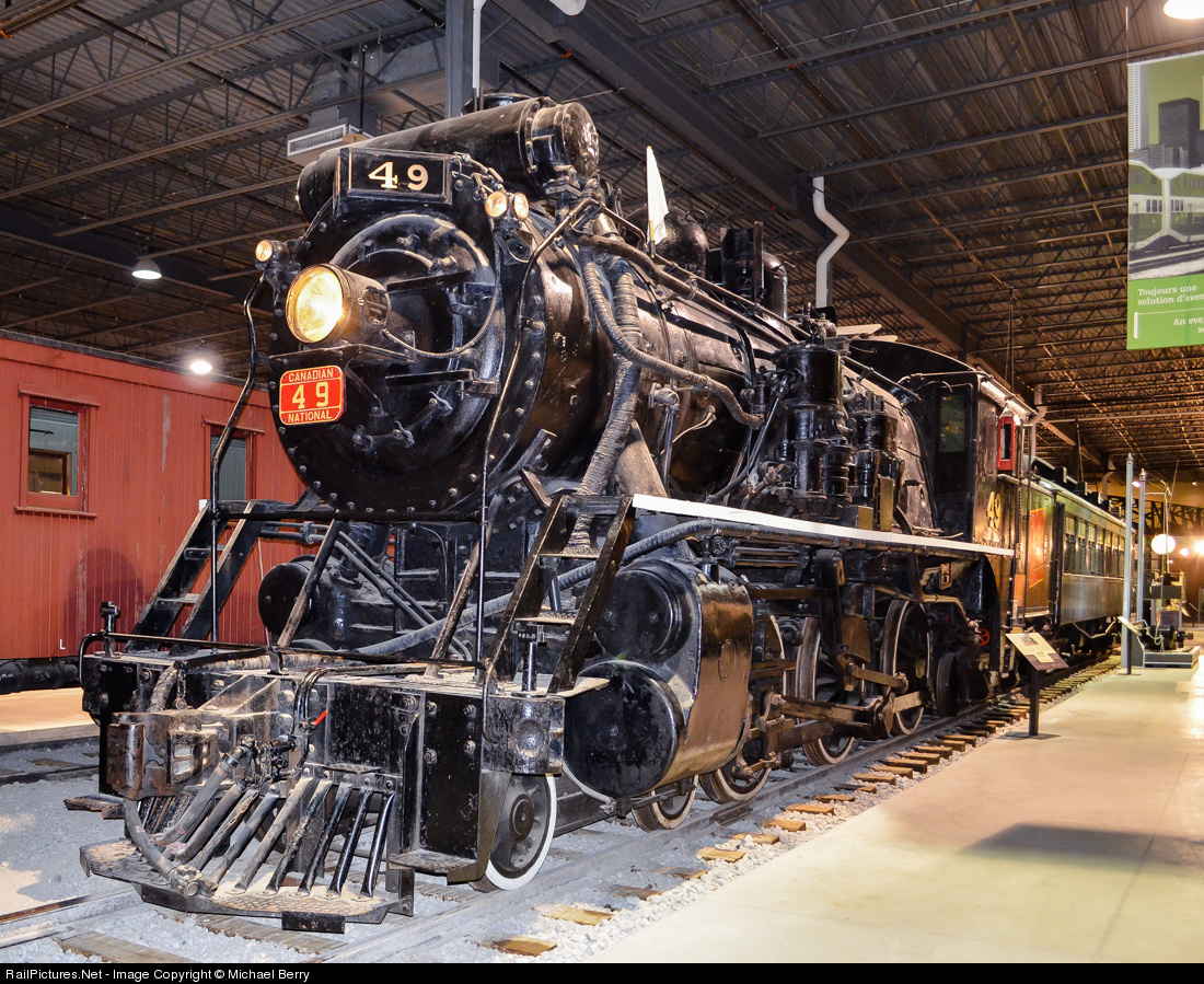 | CN 49 (class X-10-a) is a 4-6-4 tank engine which was used as a bidirectional engine on a Montreal commuter line. It was originally built by the Montreal Locomotive Works for the Grand Trunk as GTR 1544. For more train photos, check out http://www.railpictures.net/photos/mtlwestrailfan/ |
