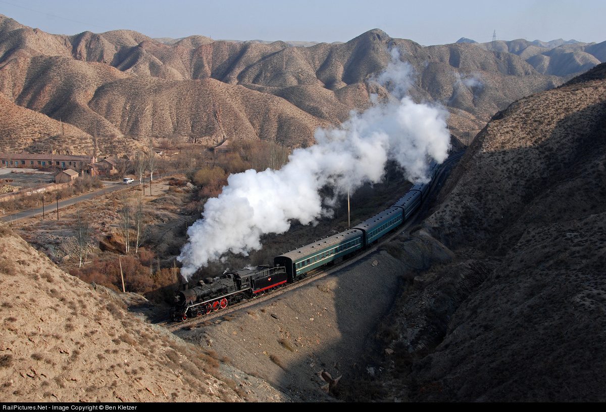 On a cold winter's day in 2010, the afternoon passenger storms up the loess canyons in Baiyin. This scenic railway existed to serve a massive copper mine deep in these canyons, as well as the associated smelters and industries. Despite this industry, the passenger train was the highlight, for it was the last standard gauge revenue steam passenger in the world, existing to serve the villagers and workers of this area. Sadly, this line was finally dieselized in 2013.