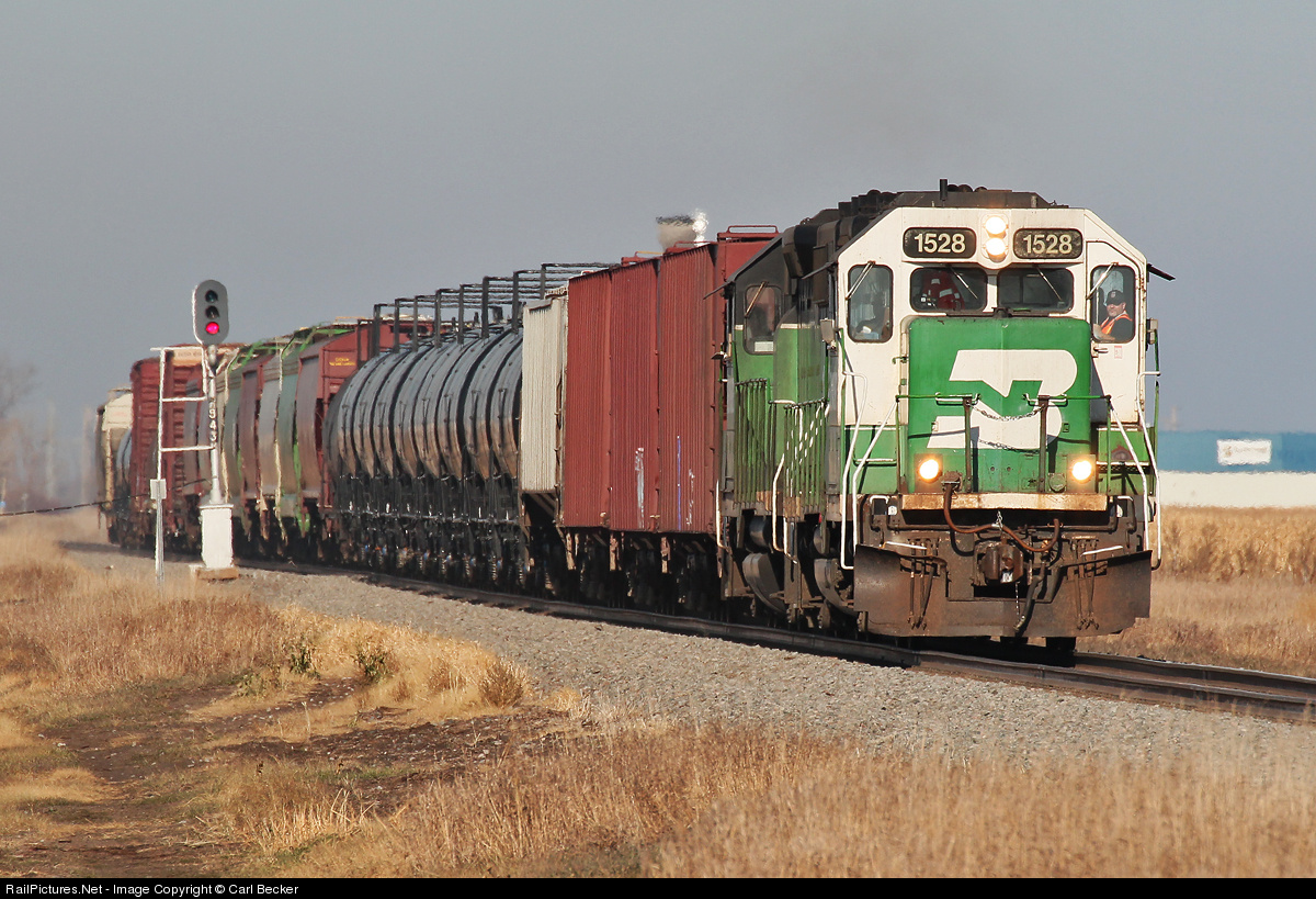RailPictures.Net Photo: BNSF 1528 BNSF Railway EMD GP28M at Merrifield, North Dakota by Carl Becker