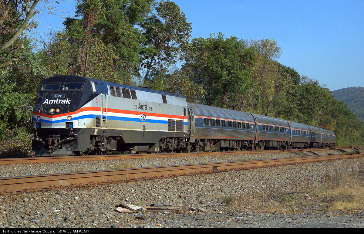 RailPictures.Net Photo: Amtrak 822 Amtrak GE P40DC at Cove, Pennsylvania by WILLIAM KLAPP