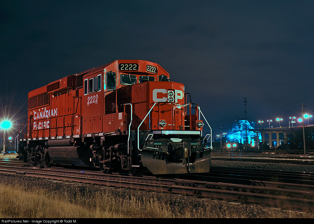 | Baby it's cold outside! An air temperature of 10 and a wind whipping out of the northwest will make for a downright cold night for this newly rebuilt GP20C ECO as it idles away at the CP yard on Rices Point near Duluth, MN. The newly refurbished John A. Blatnik bridge in the background illuminates cars traveling between Minnesota and Wisconsin.