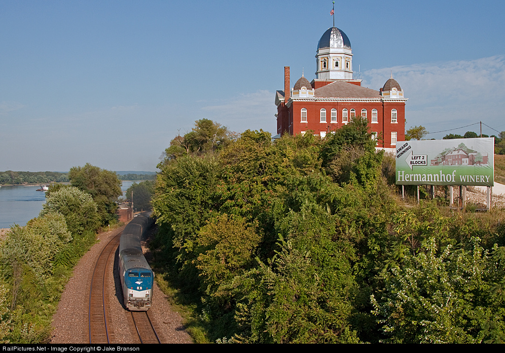 RailPictures.Net Photo: AMTK 52 Amtrak GE P42DC at Hermann, Missouri by Jake Branson
