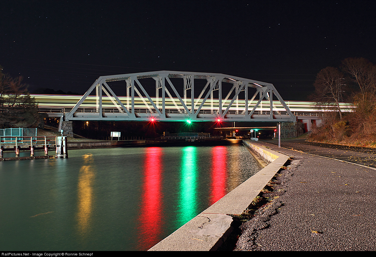 A late night Montauk bound train crosses over the Shinnecock Canal, the site of one of the more prolific bridges on the LIRR. The canal, opened in 1892, provides a shortcut between Peconic Bay and the Atlantic, but provides only about 22 feet of clearance under the railroad bridge. The present bridge was built in the early 1930s, replacing an earlier truss bridge of a similar design.