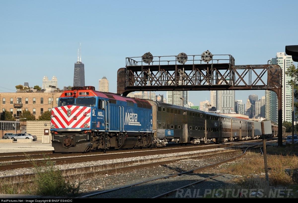 RailPictures.Net Photo: METX 118 Metra EMD F40PH at Chicago, Illinois by BNSF ES44DC