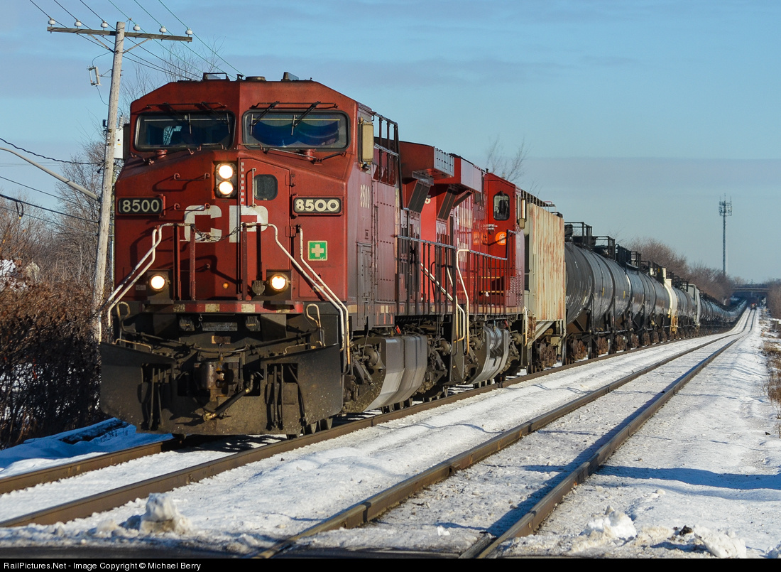 | CP 8500 & CP 8755 lead an empty unit train westwards through Beaconsfield and are about to cross over Woodland Avenue. For more train photos, check out http://www.railpictures.net/photos/mtlwestrailfan/ |